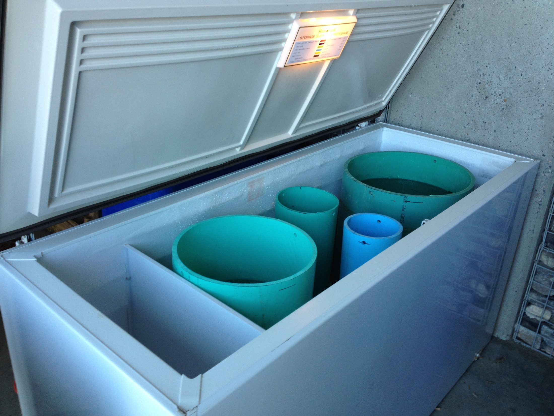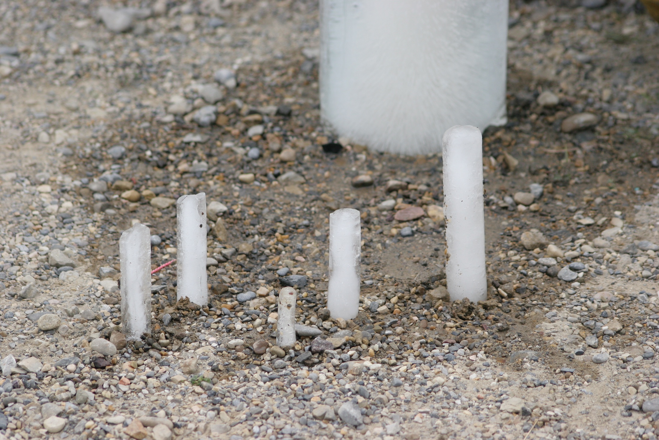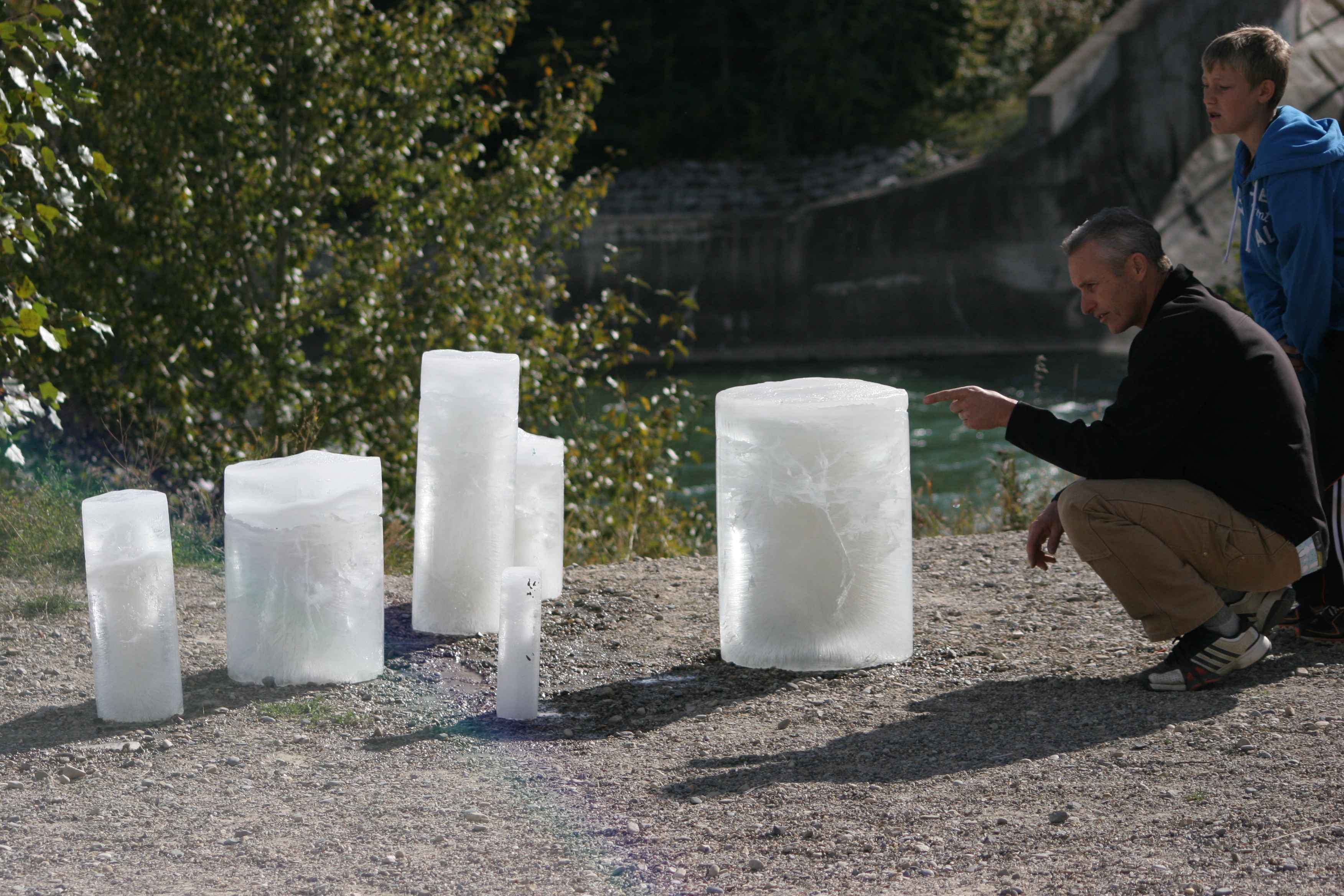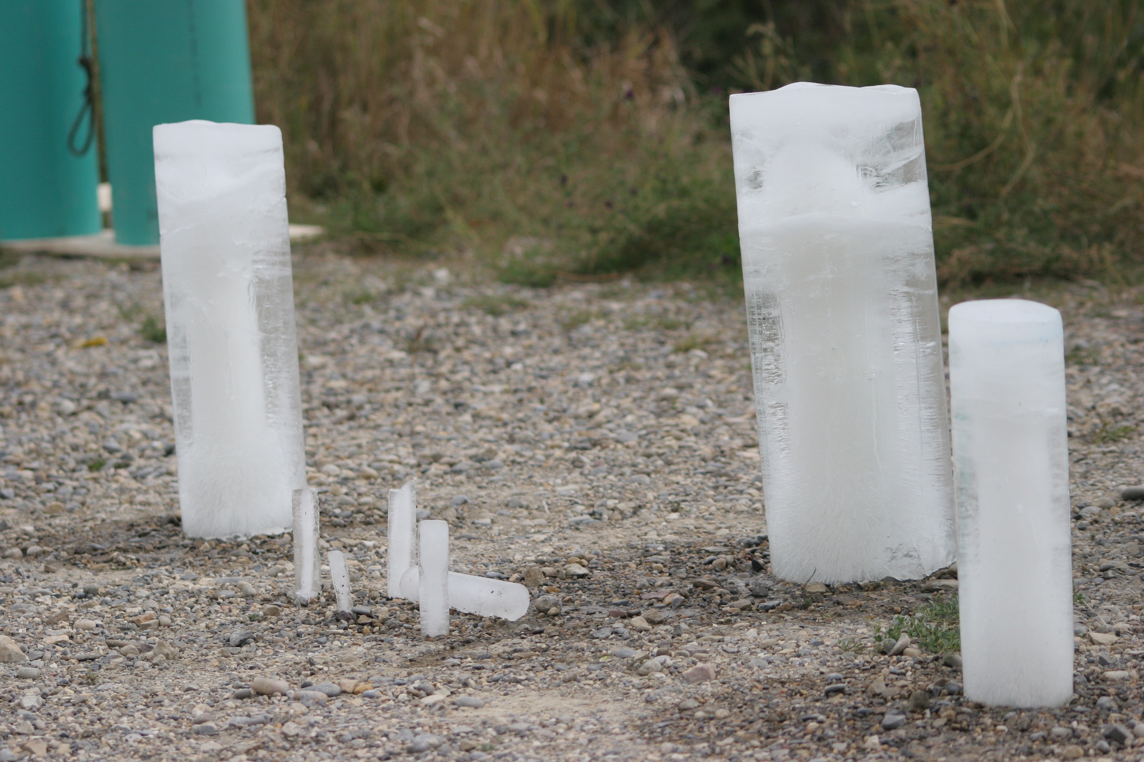 Select a number of species of animal and/or plant commonly found in the Bow River watershed. Calculate the (approximate) quantity of water present in each species. Acquire a selection of differently sized water pipes used by the City of Calgary water services department. Assign each animal/plant to an appropriately sized pipe and seal one end of the pipe to make a watertight container. Fill each pipe with a quantity of water corresponding to its assigned animal/plant and place in a freezer. The water should be borrowed from the Bow River watershed. Wait until all the water is frozen. (This might take several days for larger animals and plants, such as a grizzly bear or alpine larch.) Take the ice molds from the freezer and place them somewhere near to a body of water that will find its way to the Bow River watershed. (This might prove complicated as there are, necessarily, strict regulations about putting water or any potential contaminants into the Bow River and its tributaries. Make sure that you are confident of the source of your water and that you are certain that you are recycling unadulterated water from the Bow watershed. If any members of the public witness this experiment, please take the time to explain what you are doing, making sure that you emphasise that you returning unmodified water from the Bow River watershed to the Bow River watershed.) Carefully remove the ice columns from the molds. Observe the ice melting. Depending on how much time you have, you might like to choose a site for your Melting Species that catches the sun and to carry out the experiment in late spring, summer or early fall. This experiment could also take place in winter, but observation equipment such as a camera, set to take timed photographs, might be required.