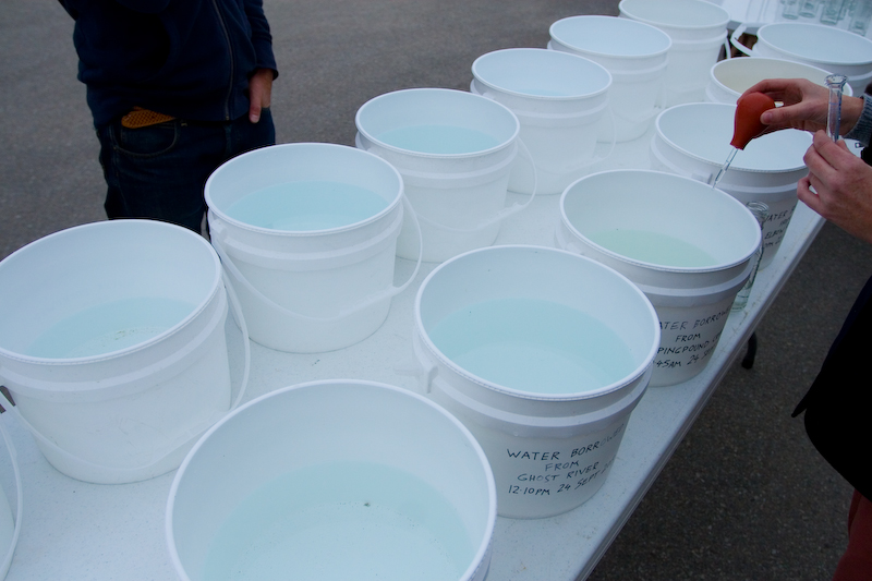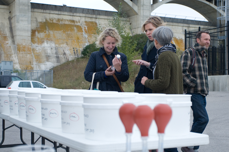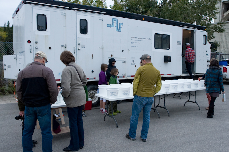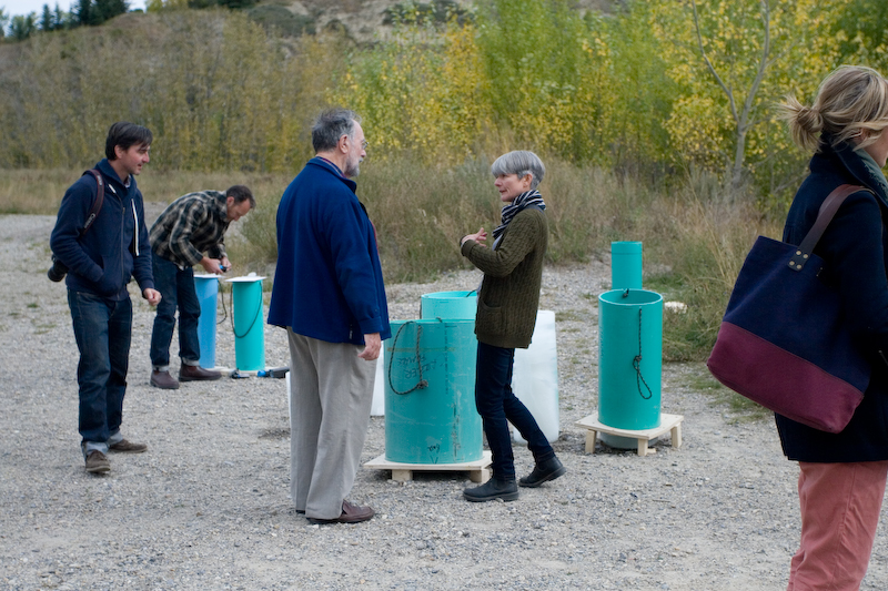 Minty and Nick held an ‘open studio’ event in Alberta at Glenmore Water Treatment Plant, 28 September 2013, where they shared Guddling About as work-in-progress. Approximately 200 people attended the event and witnessed or participated in the micro-performances.
