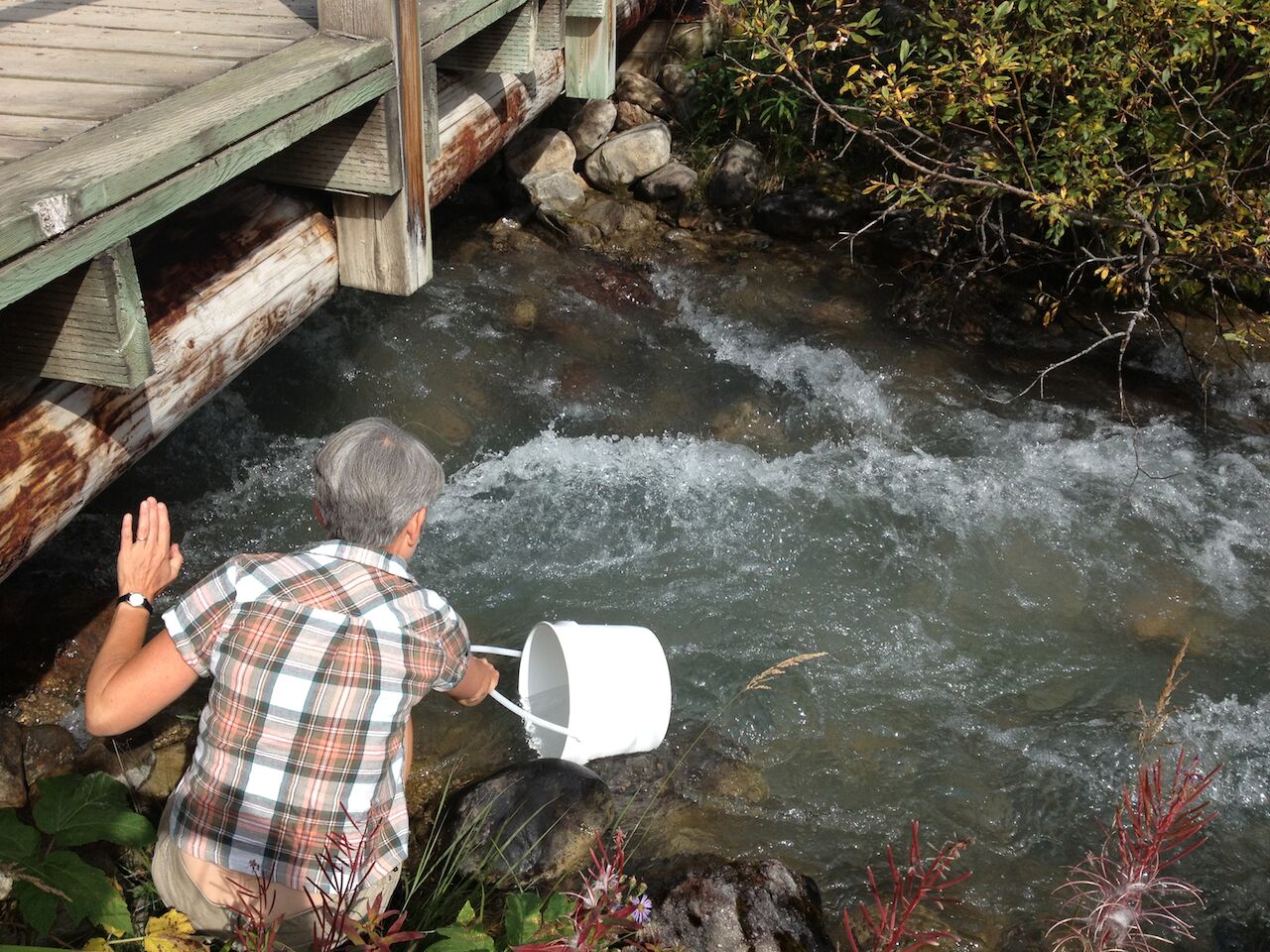 Visit as many of the tributaries of the Bow River as possible. Ask each tributary you visit for permission to borrow some water. If you feel permission has been granted, carefully take a pailful of water, noting the date, time, weather conditions, topographical features and water quality. Remember to thank the river or creek for the water.