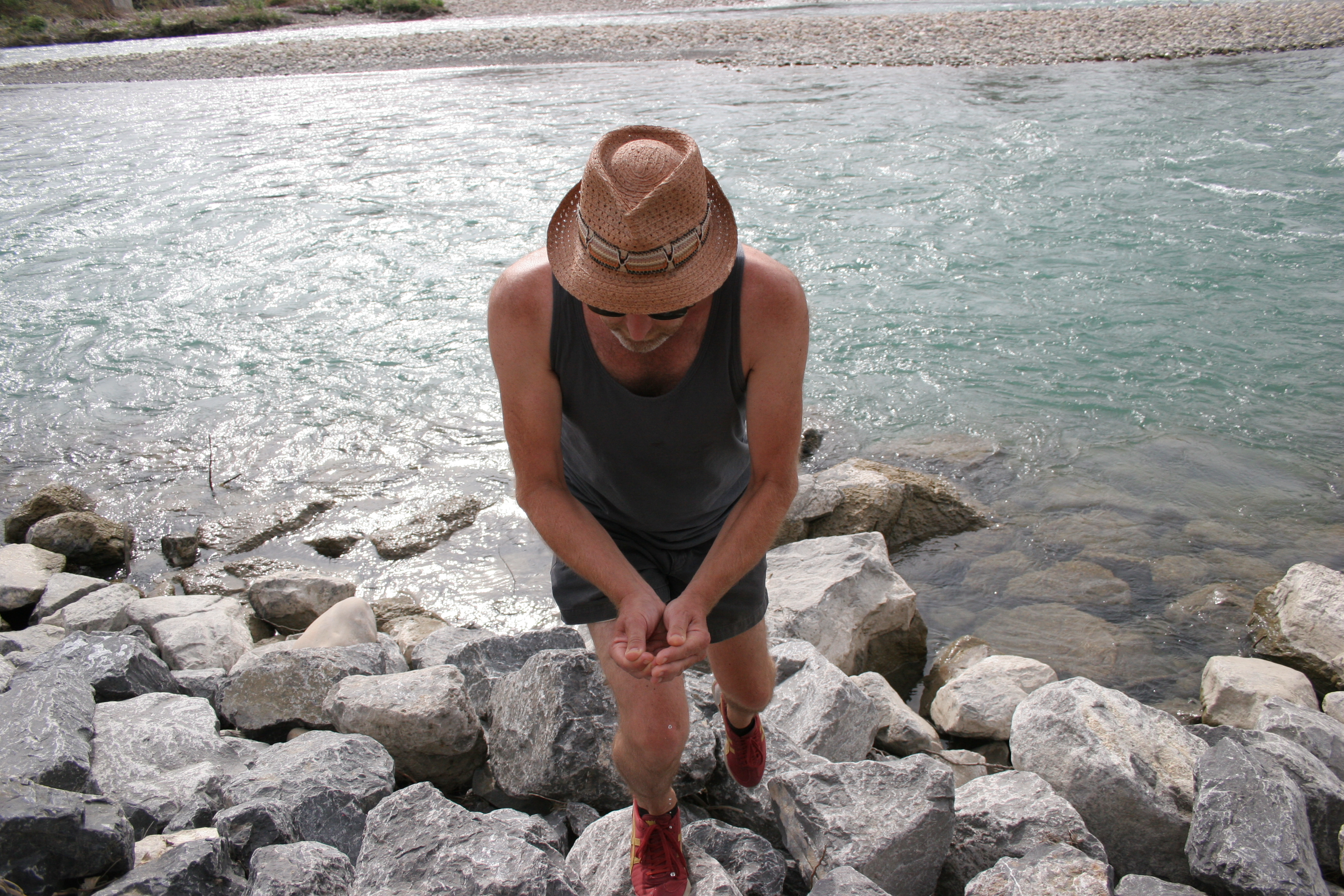 Scoop water from the Bow River with cupped hands. Carry the water in your hands as far as possible from the river. Stop when there is no water left in your hands.