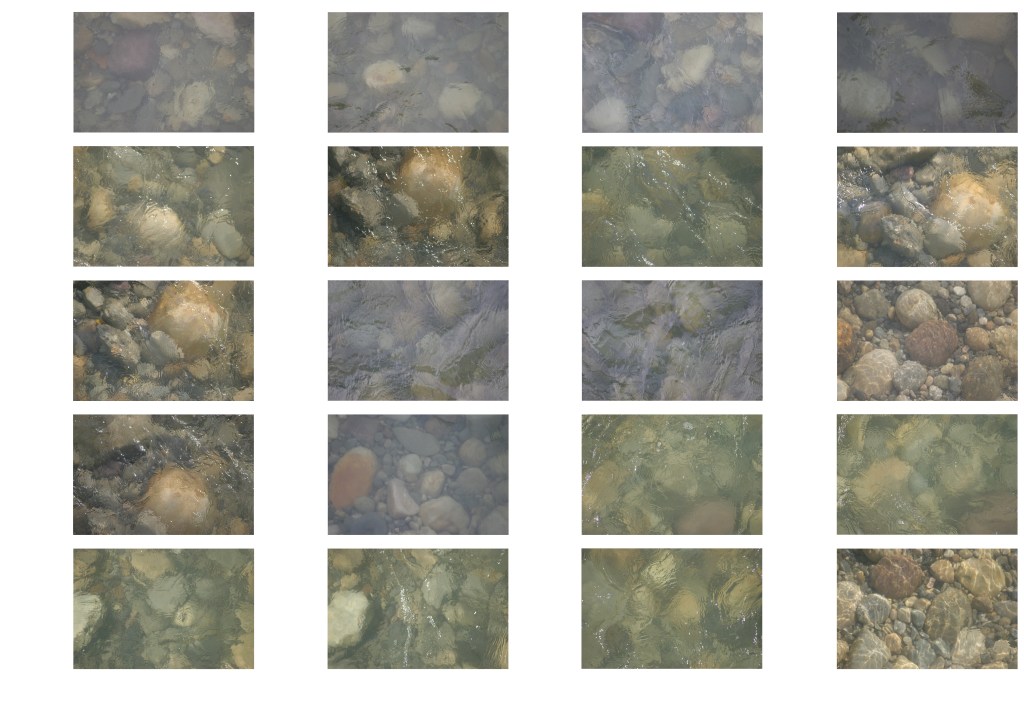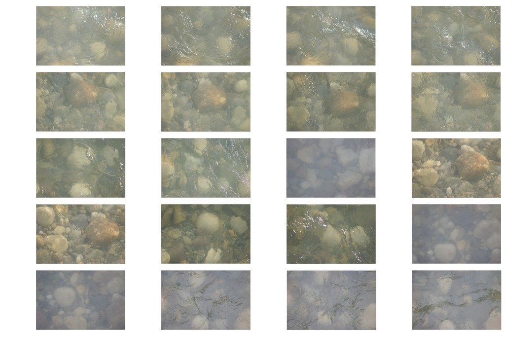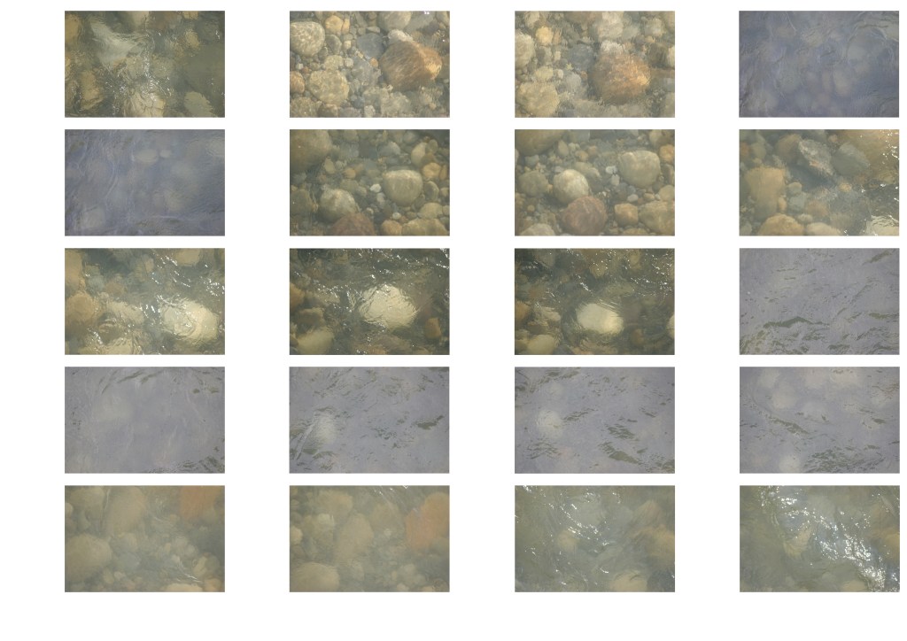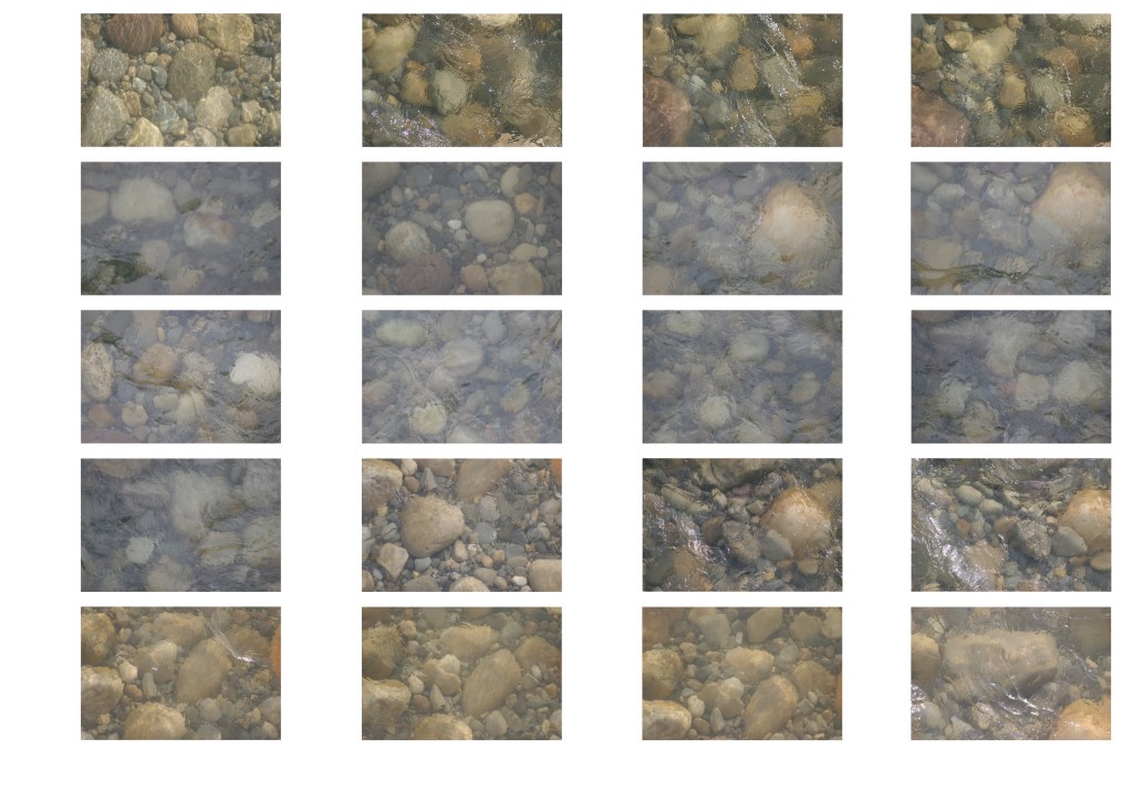 Visit the Bow River at a bridge of your choice every day for as long as you can manage. Using a zoom lens, take a photograph from the bridge looking directly down at the water. Experiment with focusing the camera on the water surface or on the riverbed. If possible, take the photograph from both sides of the bridge and from different points in the bridge, observing the differences in light, shadow, water motion and transparency.