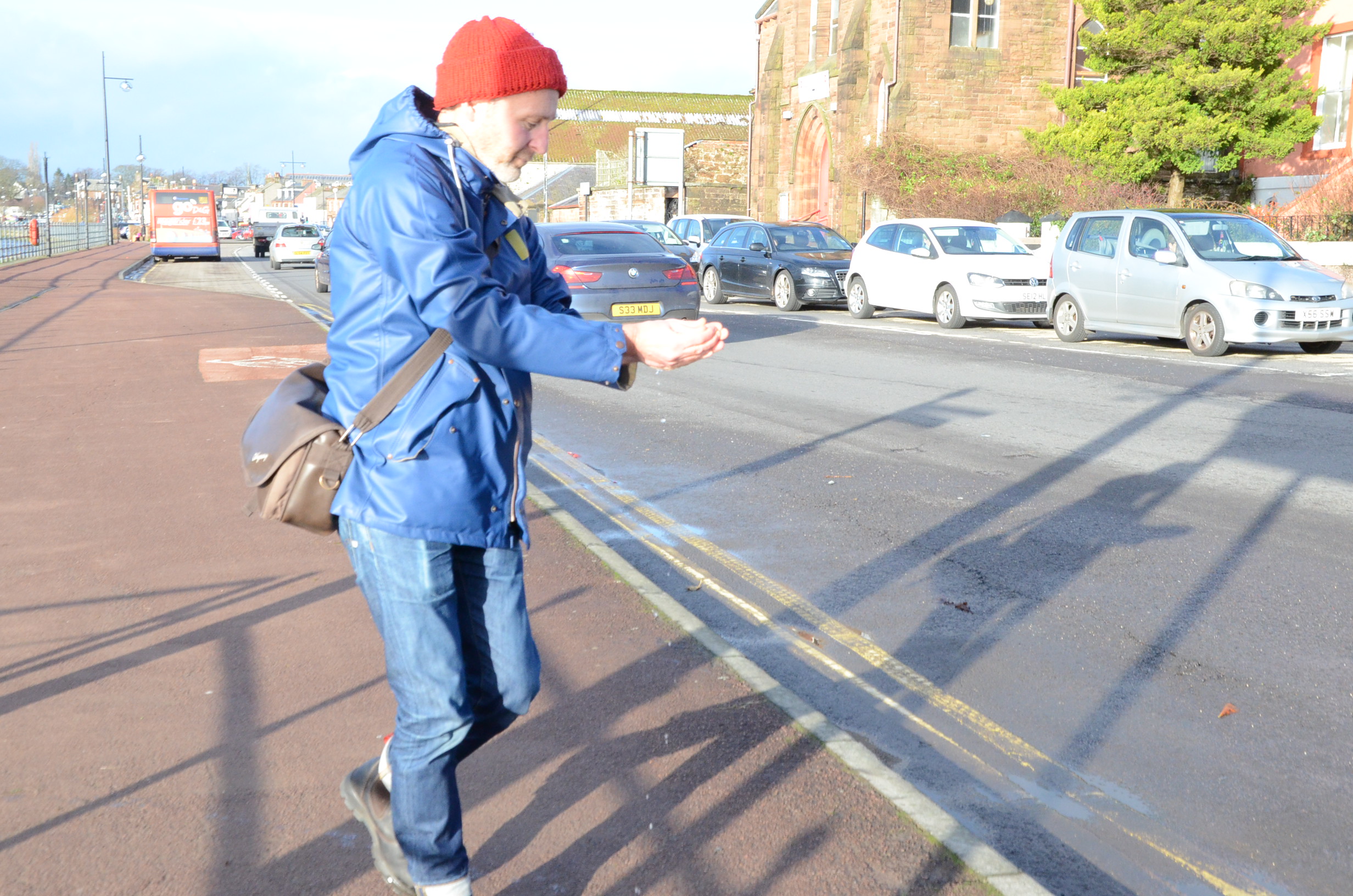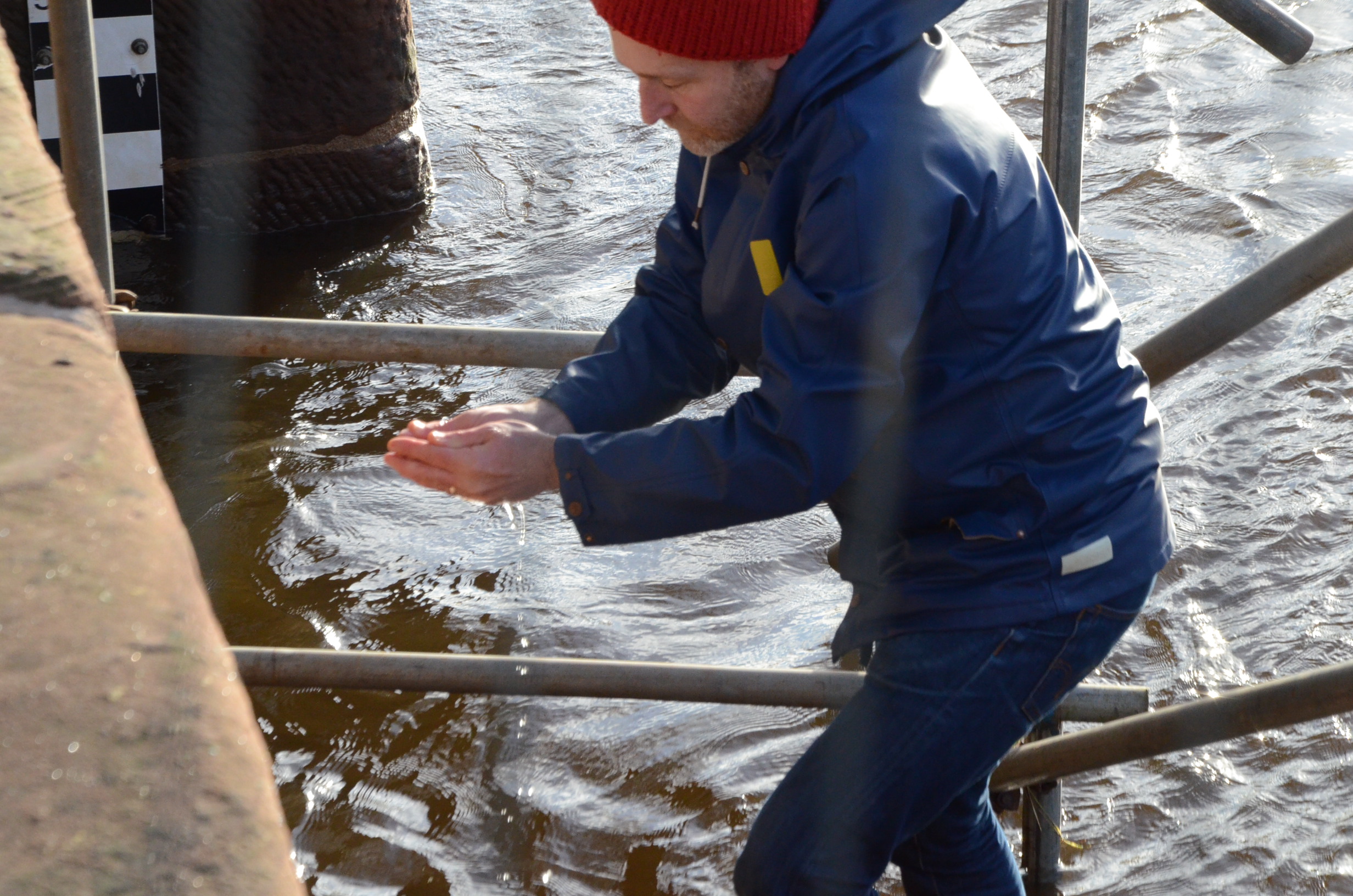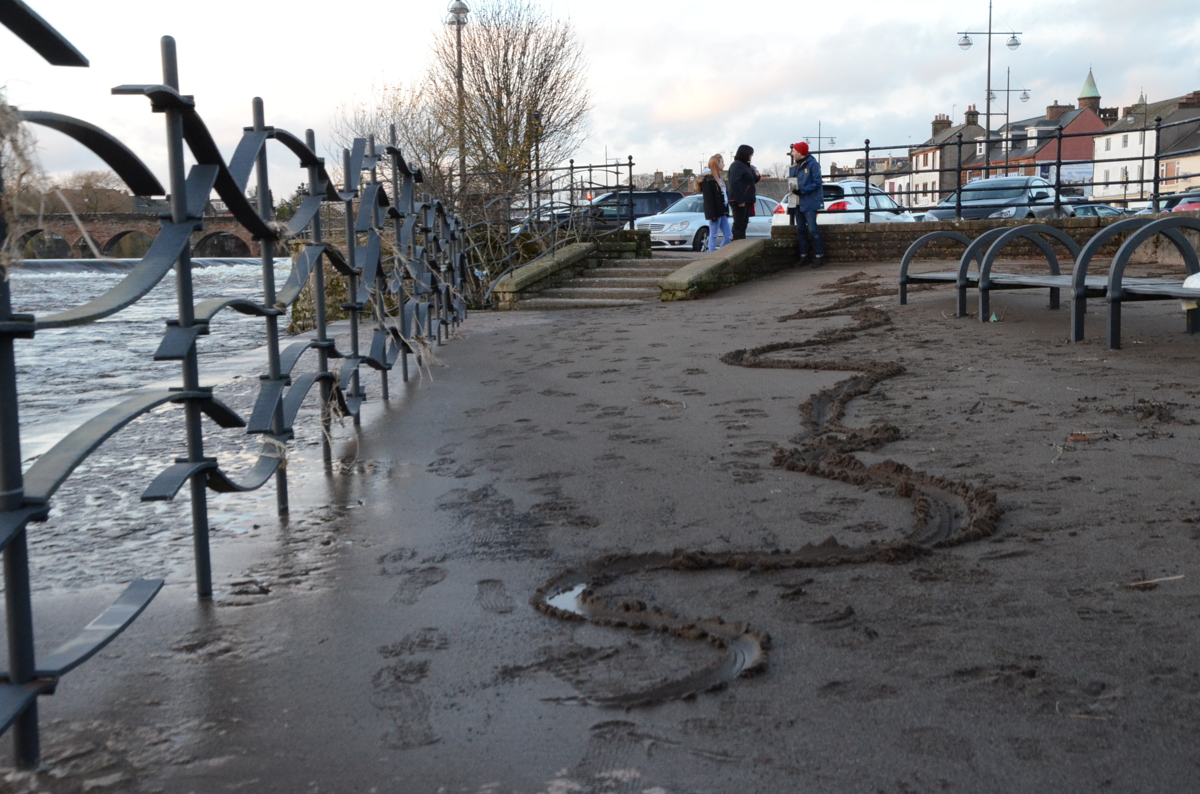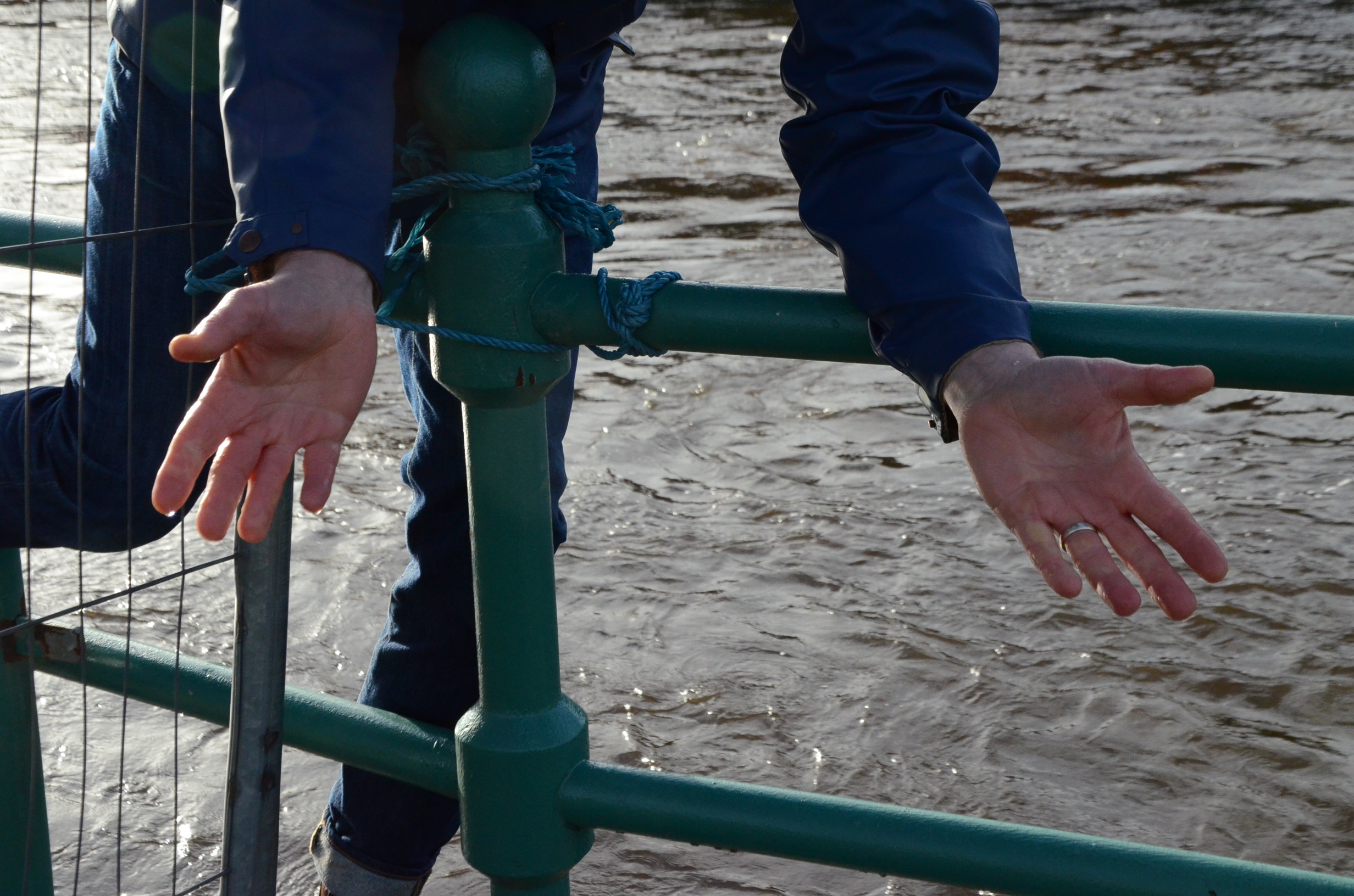 The River Nith in Dumfries town centre is prone to seasonal flooding. The Guddling About: Dumfries micro-performances were intended to invite people to engage with their feelings about the regular incursion of water into the city centre (which has become more frequent in the last decade), and to consider the Nith’s relationship with its wider water catchment area.
