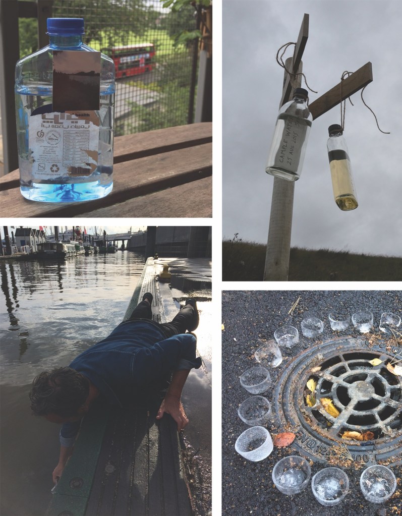 Each Guddling performance is devised in response to the particular watery context in which we are working. We typically spend time in each location, observing how water appears, moves, and disperses, and the local characteristics of human-water interaction. Often, we meet and speak to residents and experts about their relationships with water. However, while each Guddling performance is context-specific, we also repeat and adapt aspects of the performances; actions and elements may recur in each iteration of the work, in each new locale. This, we believe, reflects something of the commonality of human-water interrelations, while responding to the unique conditions in each location. Our approach recognises ‘our joint implication within a hydrocommons,’ while contending that ‘living ecologically demands more attention to difference, and any theory on the relationality of bodies of water must readily answer this demand (Neimanis 2017, 20).9