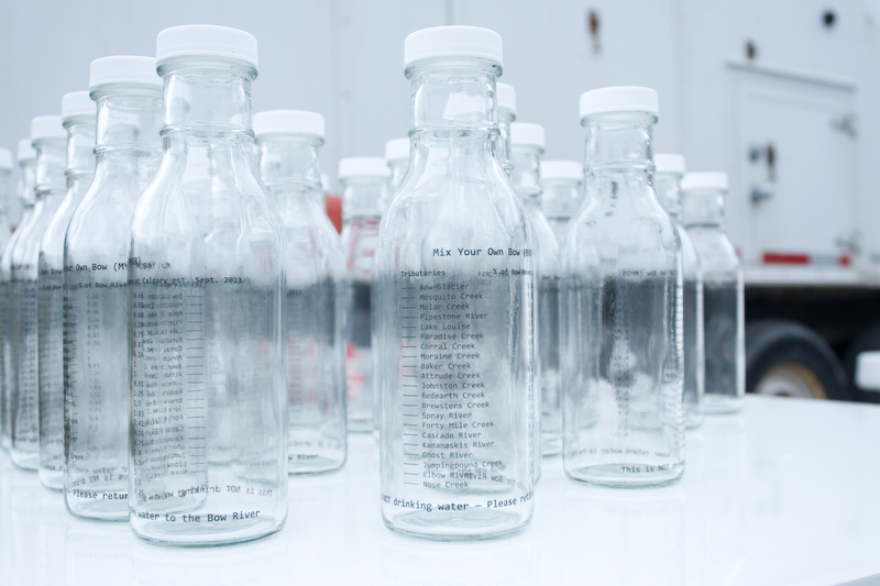 MYOB was intended to provoke reflections on specific and complex human-water relations in the Bow River water catchment area, while toying with notions of water’s universality, human implication in its control and circulation and the ‘natural’ course of rivers. MYOB invites human participants to carry out actions that articulate humans’ habitually overlooked interventions within what is commonly understood as the ‘universal water cycle’ in a playful but potentially thought-provoking and affective way. The concept of a universal hydrological cycle has been critiqued compellingly by geographer, Jamie Linton, who argues that it is a modern invention designed to promote understandings of water as abstract and universal. This framing of water allows material and cultural specificities to be ignored and overridden. It propagates ideas of water as a generalised and quantifiable resource — ideas that have serious implications for current water management strategies and the so-called global ‘water crisis’ (Linton 2010, 105-190). The participatory performance succeeded in prompting discussions about the ways in which the ‘natural’ tributary water is diverted, treated, managed and commodified. It also prompted remarks about the composition of Bow River water, the qualities of the different samples and concepts of ‘purity’. For instance, the blue-green, mineral-rich water from the tributaries close to the Bow’s source (Bow Glacier in the Rocky Mountains) differed visibly from the sludge brown tones of water from tributaries that flowed through agricultural land. In asking participants to return the water to the Bow River MYOB might also, however, be understood as promoting a belief that we are temporary custodians of the river water and that we have an obligation to allow it to continue its ‘natural’ journey downstream. In this, the instruction can be read as imposing human attributes like ‘care’ and ‘courtesy’ onto human-nonhuman relations and assuming that the water ‘wants’ to return to the body of the river. Further, the instruction affords considerable agency to the human participants in allowing them the freedom to choose where, when and if they will ‘return’ the tributary water to the Bow River watershed. In these contradictory interpretations, Water Borrow/MYOB raises complex issues of responsibility, accountability and ethics in its exploration of human-water interdependencies. What, then, is its value as ecological practice? Returning again to Barad and applying her agential realist understanding of causality and agency proves useful here. For Barad, causality and agency cannot be attributed to human or other-than- human entities, phenomena or networks but emerge through intra-action. In an agential realist account, ‘the notion of intra-actions reformulates the traditional notion of causality and agency in an ongoing reconfiguring of the real and the possible’ (Barad 2007, 177). Understood in these terms, the apparent contradictions regarding the causal and agential relationships among human and other-than-human participants in Water Borrow and MYOB manifests as a set of potentialities, made evident through the apparatus of Guddling About. The human participants’ individual decisions regarding where, when and if they choose to ‘return’ the water to the Bow River watershed each play out as one possible version of events. The multiple actual and potential versions that were enacted or imagined through the apparatus of Water Borrow/MYOB challenge assumptions about the singularity of the ‘natural’ or ‘proper’ course of events, where the river water is envisaged as continuing on a ‘predestined’ journey from its source in the Rocky Mountains to the sea at Hudson Bay. The apparatus of Guddling About here operates as a model of ecological practice that troubles our persistent adherence to narratives based on belief in the inevitable and ‘natural’ unfolding of cause and effect. It also invites us to acknowledge and query instilled narratives about the universality and abstraction of water. These narratives frequently underpin environmental arguments concerning global water crises, climate change, fossil fuel depletion and notions of the anthropocene. The apparatus of Guddling About articulates a more complex understanding of the efficacy of human interventions into ‘natural’ processes — a more complex ethics of human-environment, and particularly human-water, interdependency. As Barad puts it:
